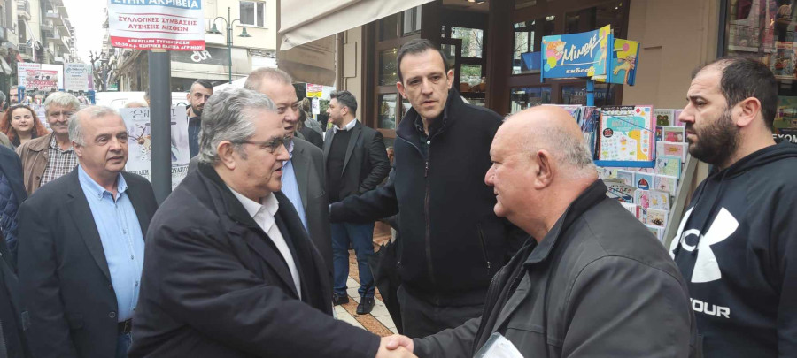 Ο Δημήτρης Κουτσούμπας περπάτησε στο κέντρο της πόλης και συνομίλησε με καταστηματάρχες και εμποροϋπαλλήλους αλλά και τον κόσμο.