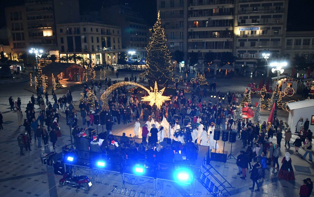 Χθες το απόγευμα πραγματοποιήθηκε η μουσικοχορευτική παράσταση στην πλατεία Γεωργίου, που περιλάμβανε χορούς, τραγούδια και μουσική, με εορταστικό χαρακτήρα, τα οποία αποδόθηκαν  από το χορευτικό, την ορχήστρα και την χορωδία του, συνεχίστηκαν το βράδυ της Τετάρτης 22 Δεκεμβρίου, οι εκδηλώσεις που διοργανώνει ο Πολιτιστικός Οργανισμός του Δήμου Πατρέων.