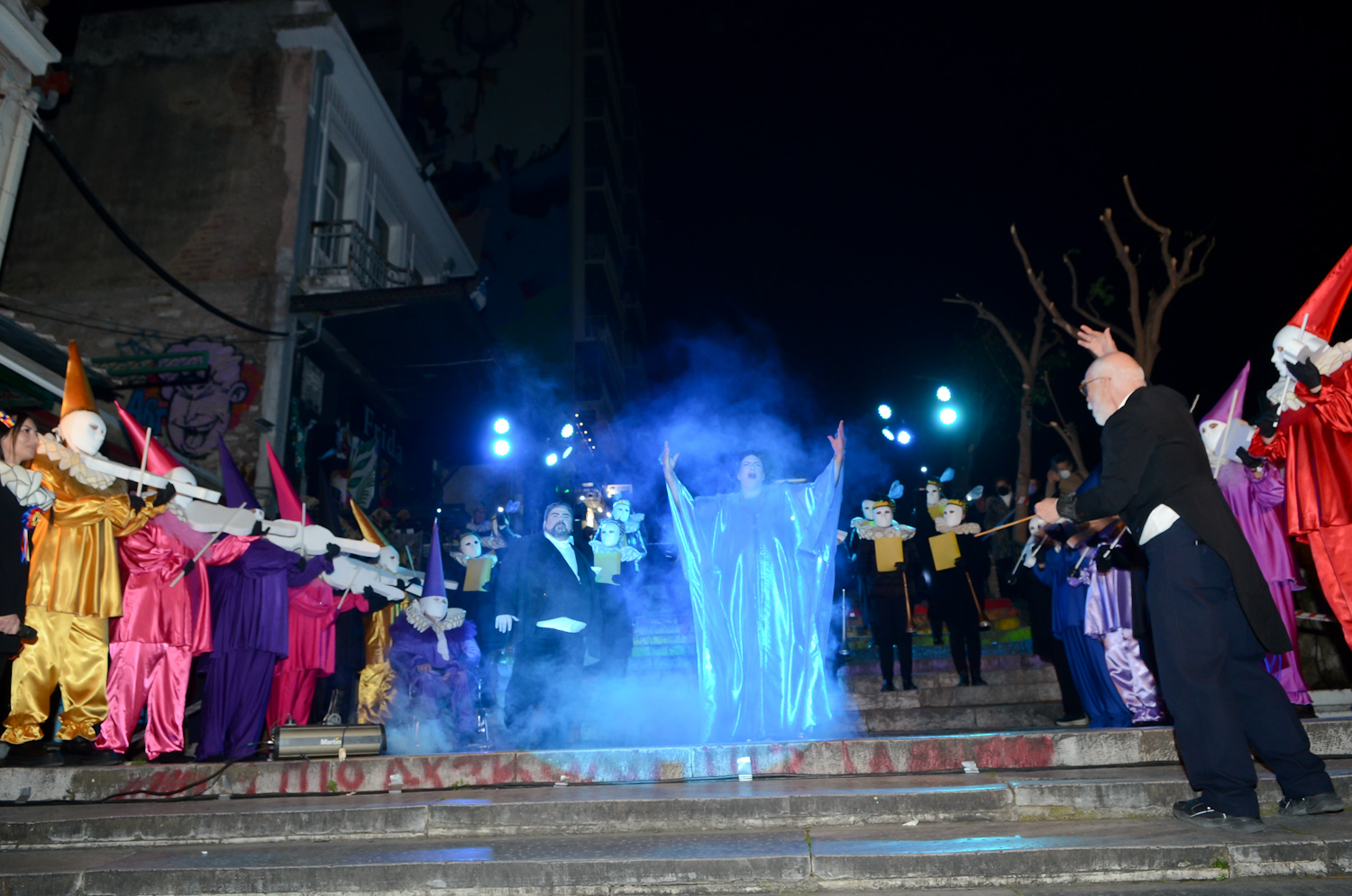 Στις σκάλες της Γεροκωστοπούλου «παρέλασαν» μοναδικές καρναβαλικές διασημότητες. Διεθνούς φήμης καλλιτέχνες: Irene Karagianni, Μaria Callas, Montserrat Caballé, Sofia Scudchenko, Edith Piaf, Luciano Pavarotti και απαράμιλλου κάλλους χορεύτριες του Moulin Rouge μετέφεραν καρναβαλική λάμψη, σατιρικό πνεύμα και μας ταξίδεψαν σε αξέχαστες στιγμές του «διεθνούς ρεπερτορίου».
